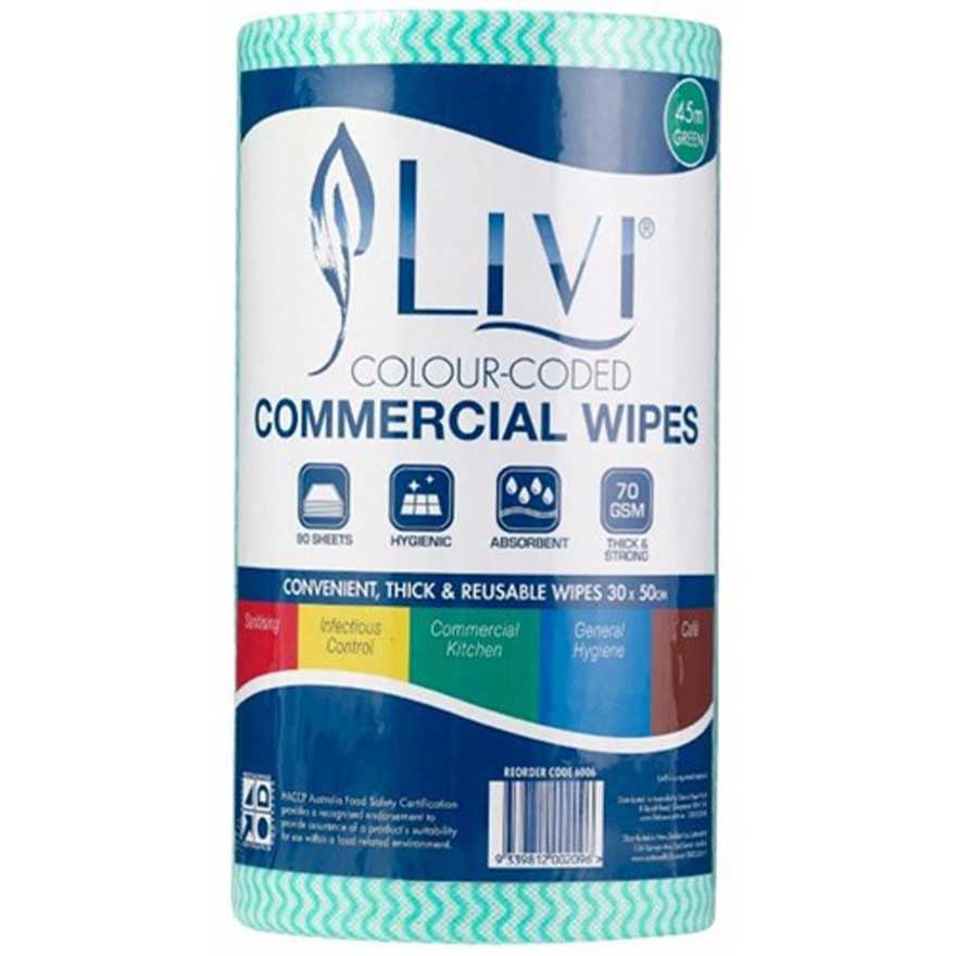 6006 Livi Cloth Commercial Wipes – Green 300x500mm 90/roll